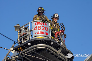 As personnel responded a column of smoke was visible and the first to arrive reported a fully involved working fire.